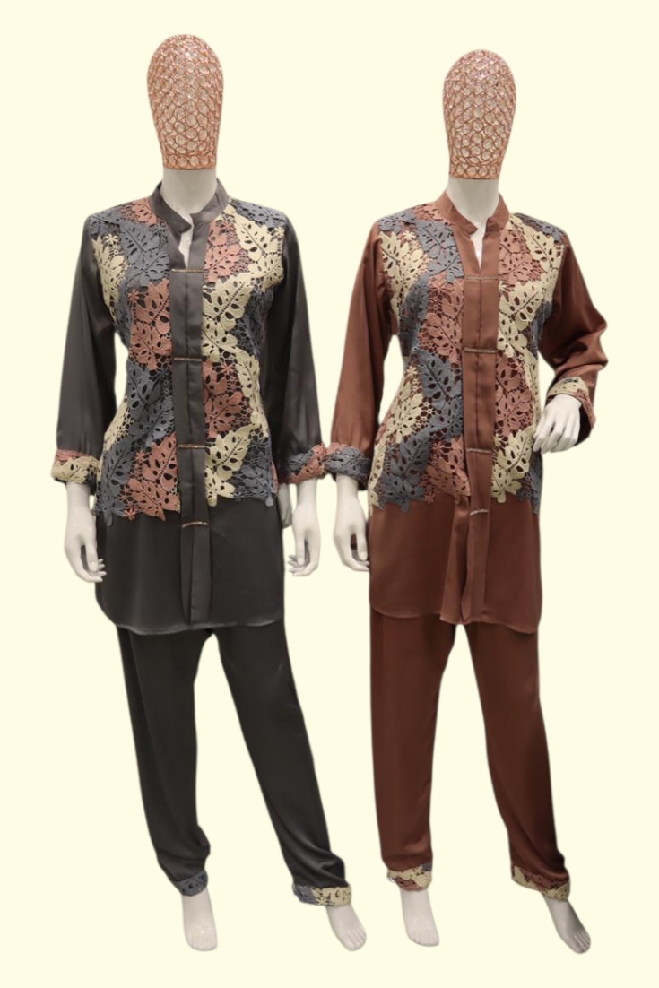 Designer Embroidered Tunic with Sleeves paired with Designer Cigarette pants